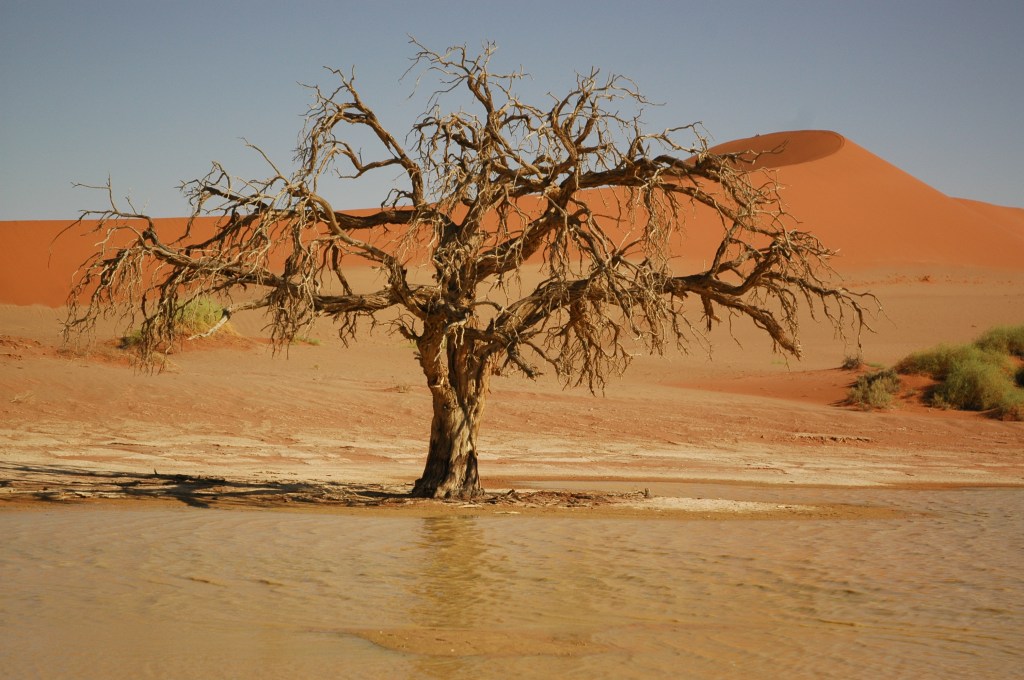 Camminata di 5km fino a Sossusvlei e a Deadvlei. Nel pomeriggio faremo una breve e piacevole passeggiata attraverso il Sesriem Canyon. Pernottamento al Desert Quiver Camp o similare oppure in Campo tendato mobile (Prima colazione e cena)