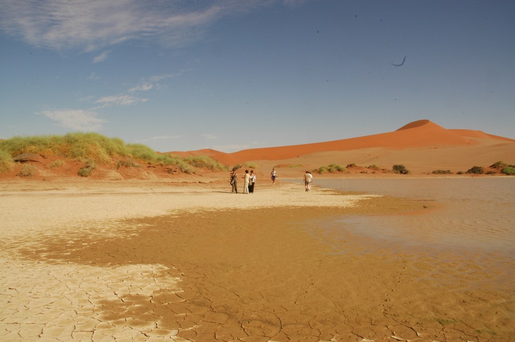 Partenza da Windhoek la mattina dopo colazione in direzione sud attraverso mutevoli paesaggi fino al nostro accampamento e al lodge al confine con il Deserto del Namib, ai bordi esterni dell’entrata del Parco. La mattina seguente partiremo all’alba per Sossusvlei, dove il truck verrà parcheggiato e il gruppo si accomoderà per assaporare i loro colori mutevoli delle dune con il sorgere del sole.