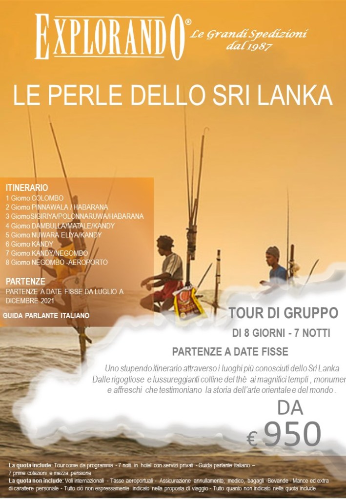 Partenza garantita OGNI SABATO da Colombo – minimo 2 partecipanti