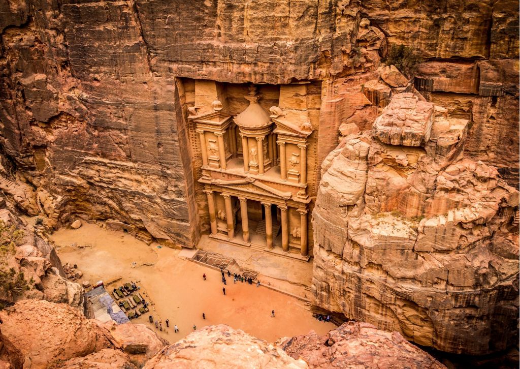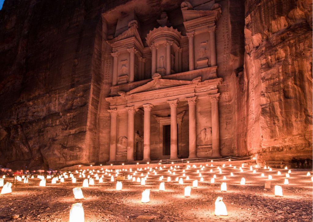 Intera giornata dedicate alla visita di Petra; una città scavata nelle rocce rosa-rosse delle Montagne del Sharah, dai Nabatei. Questo sito venne riscoperto dopo molti anni dallo svizzero Burkhardt. Passeggiata attraverso il Siq, uno stretto e ventoso sentiero tra le rocce, per raggiungere il Tesoro, il teatro romano, Qasr Bint Pharaoun, il Tempio del Leone Alato e altri monumenti. Pranzo in ristorante locale. Cena e pernottamento a Petra.