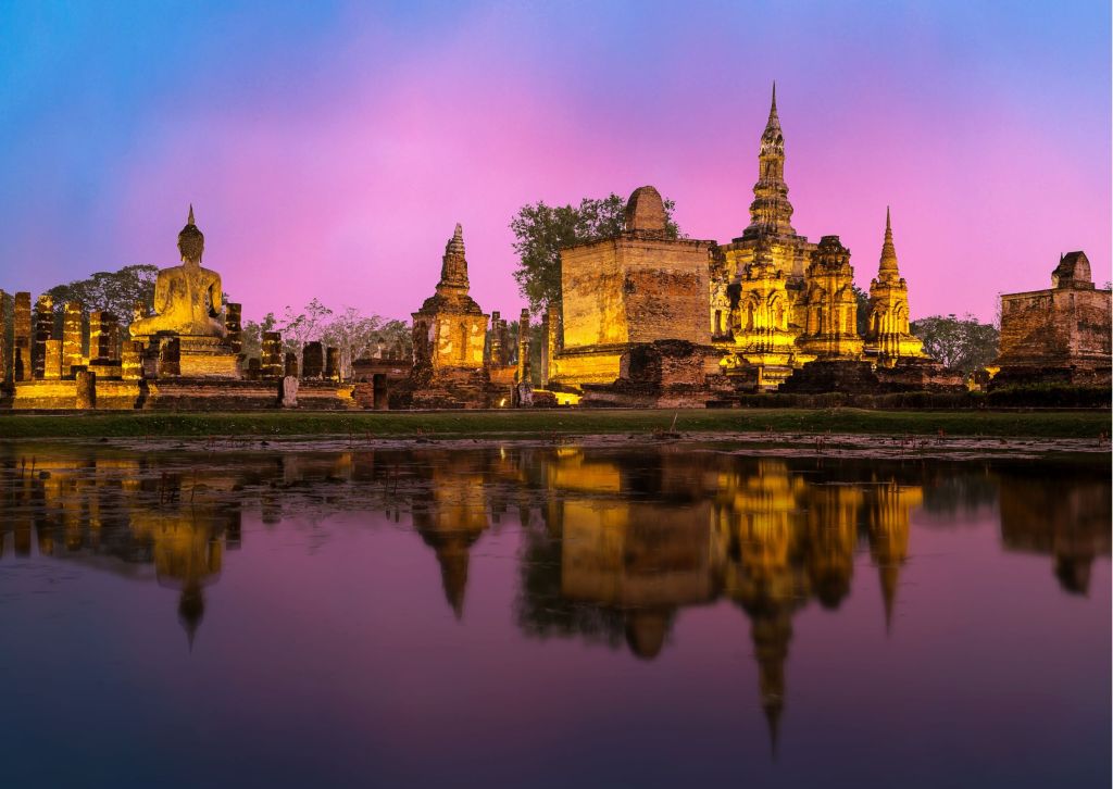 Il viaggio continua in direzione Nord per raggiungere le città di Sukhothai e Si Satchanalai, dove troviamo un’alta concentrazione di siti archeologici.